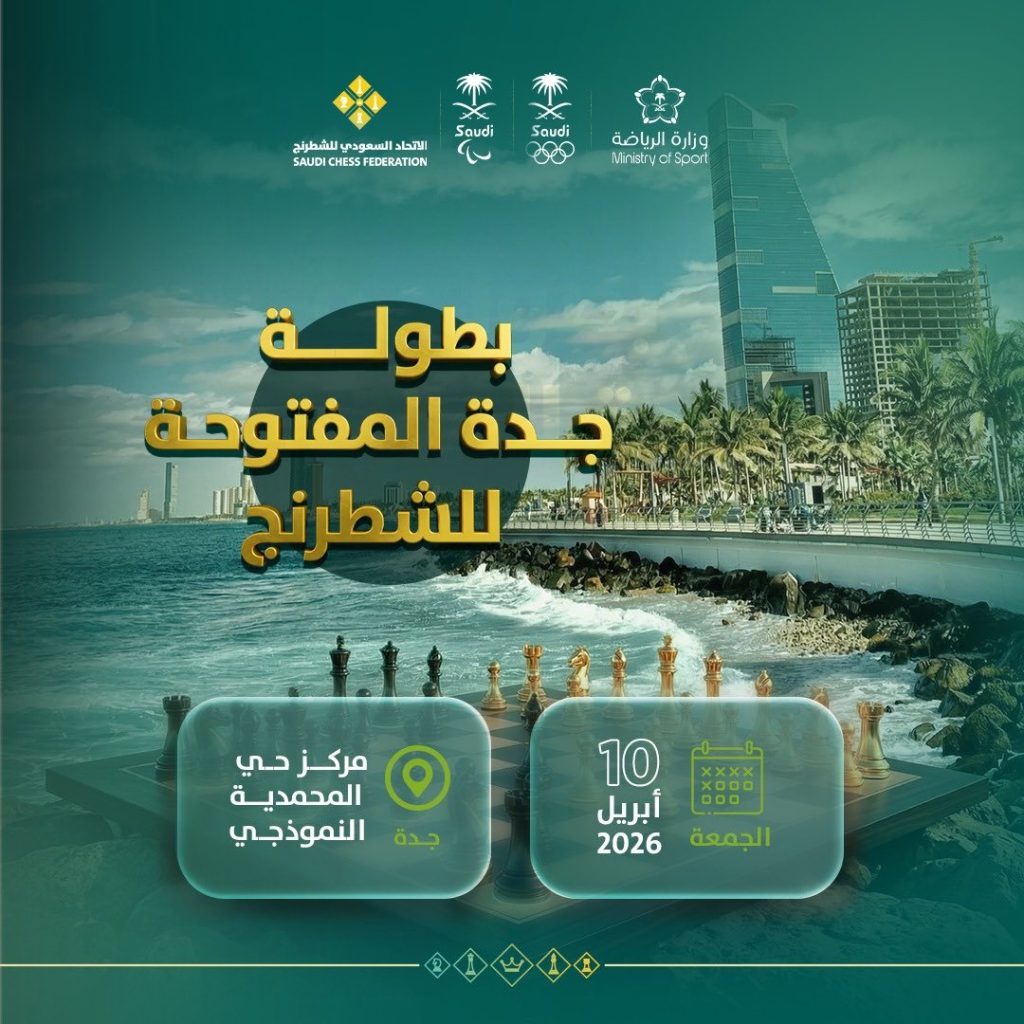 بطولة جدة المفتوحة للشطرنج بالتعاون مع @groupchess1 10 ابريل 2026 للتسجيل https://docs.google.com/forms/d/e/1FAIpQLSfcl8TKB6YlSd83cBIQQsAC9ZmX-c_uyTlQqSWtl6bjtzNtTw/viewform?usp=publish-editor لائحة البطولة https://drive.google.com/file/d/1i3znLfGE_JPs_gpCk7ArpeugmcORSr-5/view جدة – مركز حي المحمدية النموذجي https://maps.app.goo.gl/T2c47pGEHBBGjoUh9
